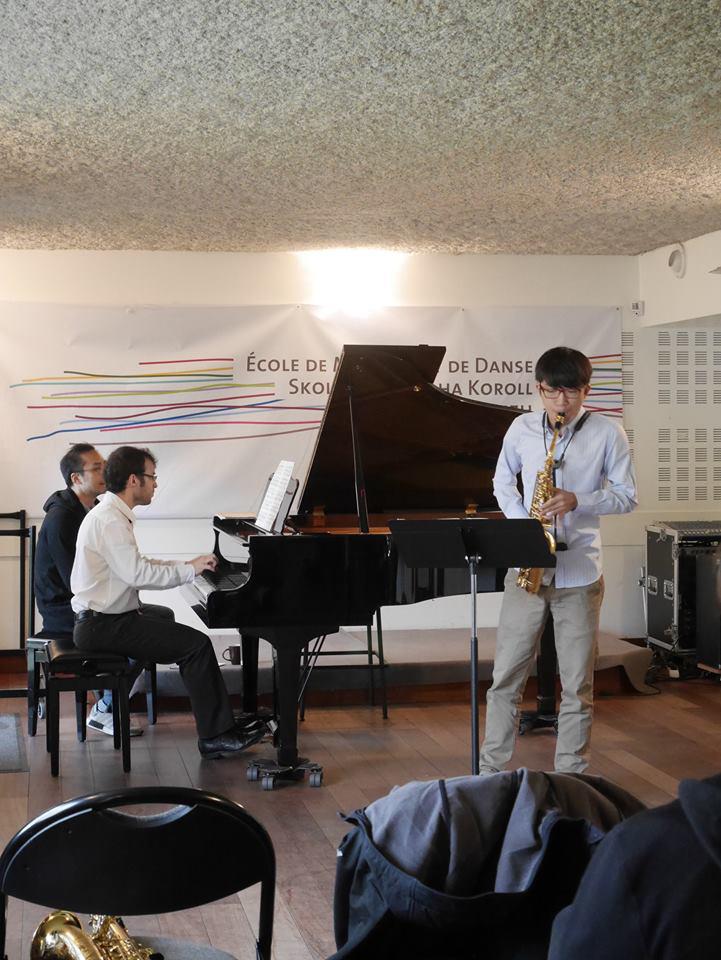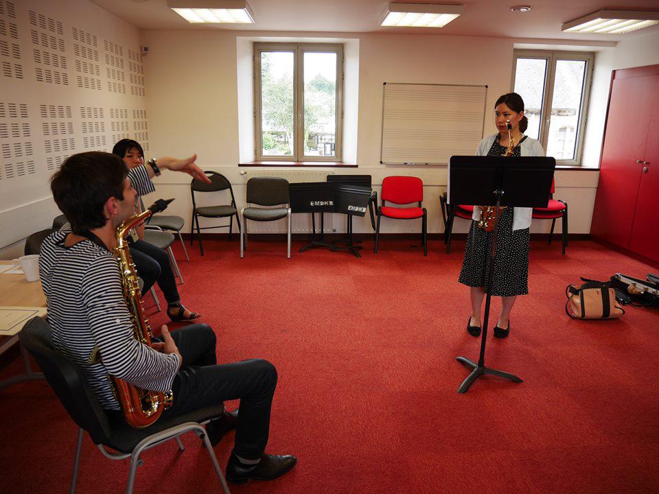 テクニック、練習アドバイスのレッスンと交互に30分のピアノ伴奏付きレッスンがマチュー・アキャー、安井寛絵によって行われます。(最終日に行われる受講生演奏会の準備も兼ねる)