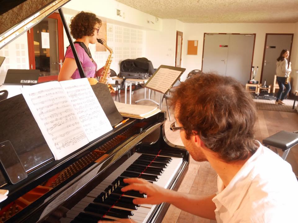 En alternance avec le module "aspects techniques et méthodologie de travail", cours avec piano avec Matthieu Acar en binôme avec Hiroe Yasui (préparation du récital final).